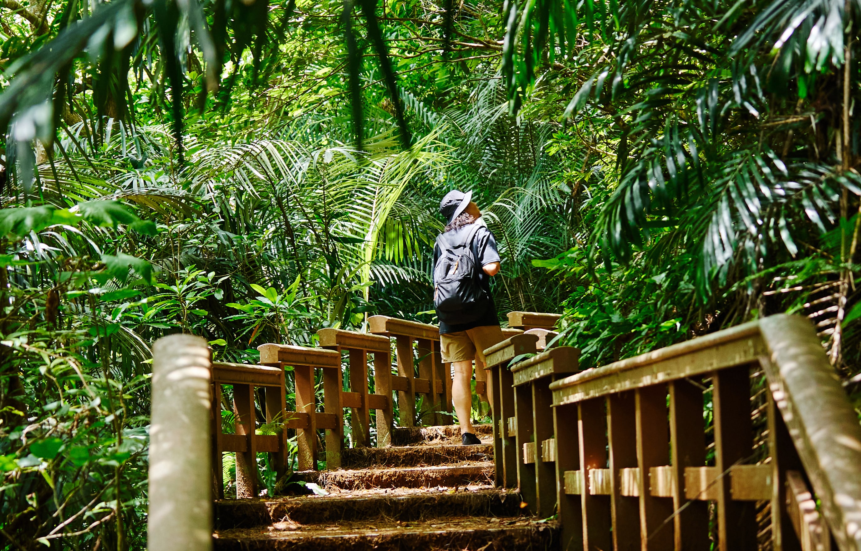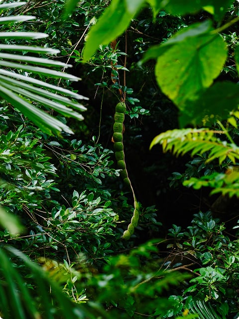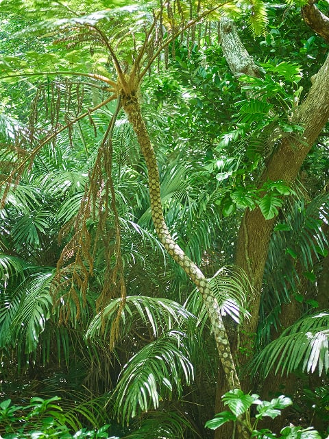 より一歩踏み込んだ亜熱帯の世界へ。数多くの植物たちがひしめき合う密林へ分け入り、散策路からは見られない固有種を探そう。探検気分で満喫できる周遊コース。
