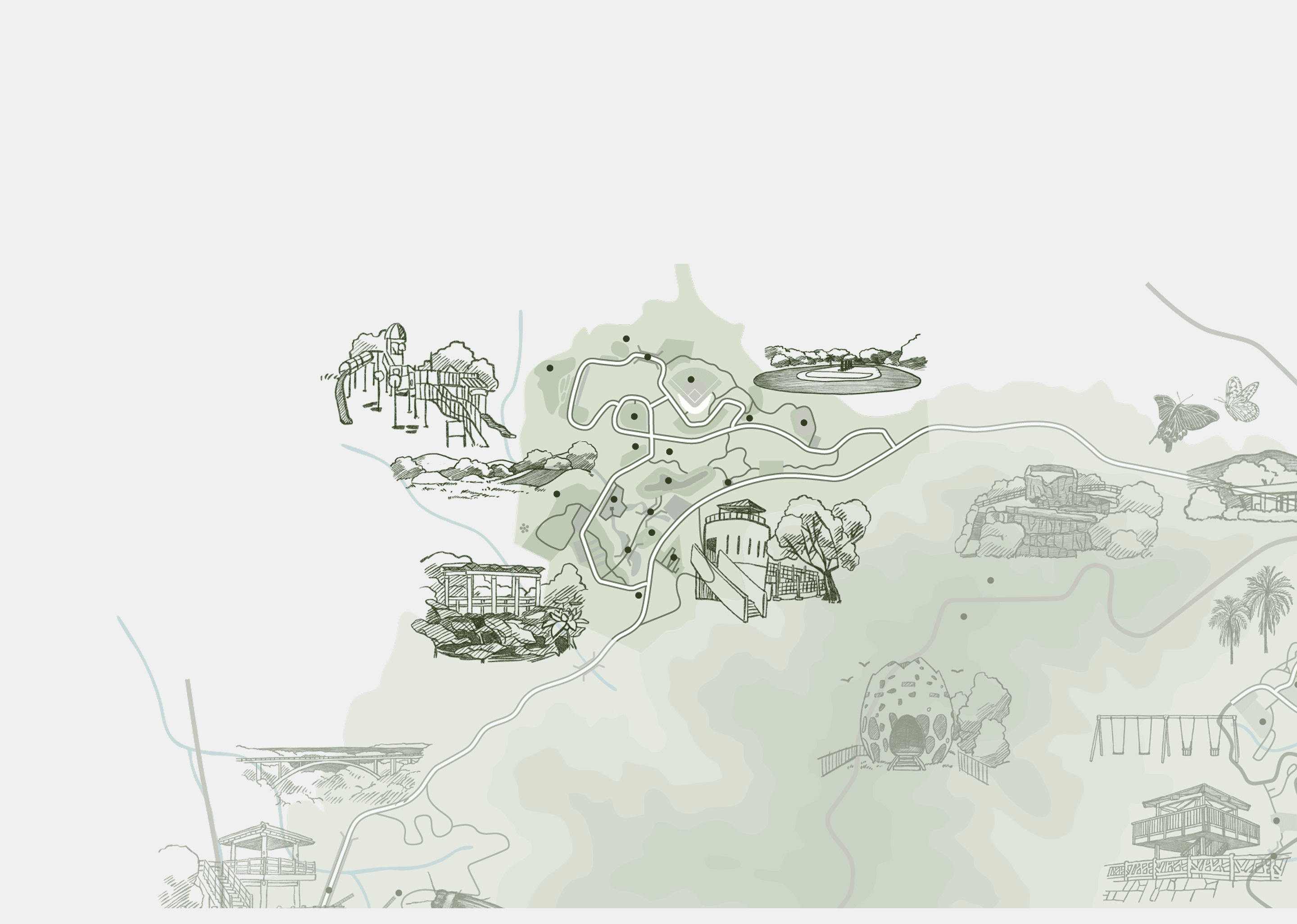 さまざまな遊びやスポーツを提供するゾーン。幼児から大人まで楽しめる多種多様な遊具や、お祭り行事などを行うことができる広場などがあります。