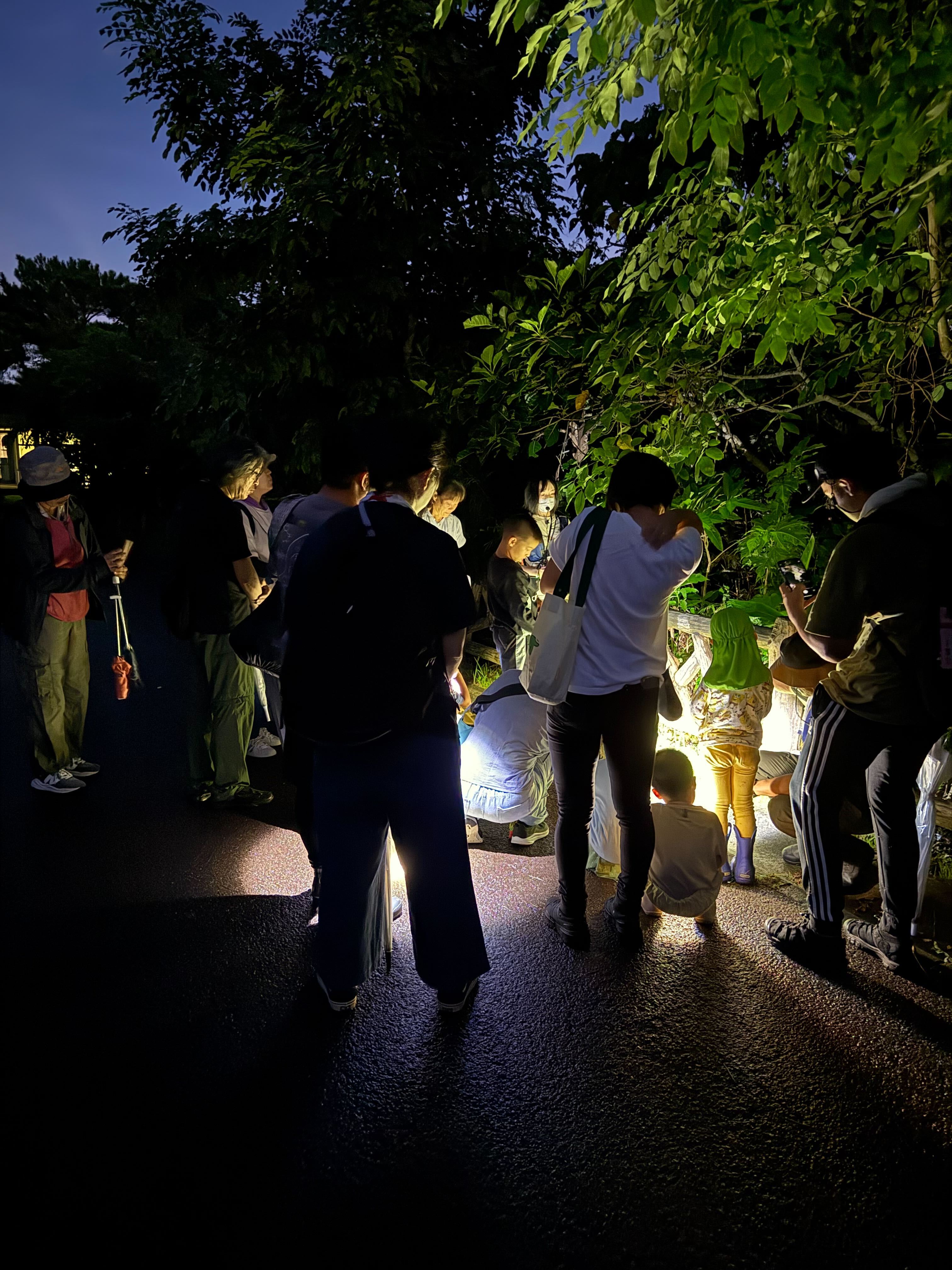 夜のバンナ公園を歩き、生きものを観察するナイトツアーです。ガイドが植物や昆虫、夜に活動する動物たちについてわかりやすく解説します。普段は見ることができない、「夜の自然」を親子で楽しく学べます。