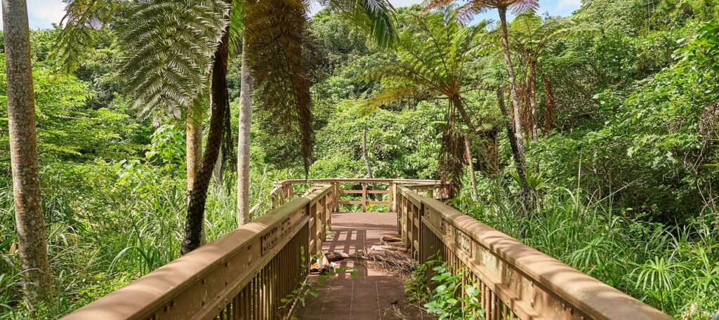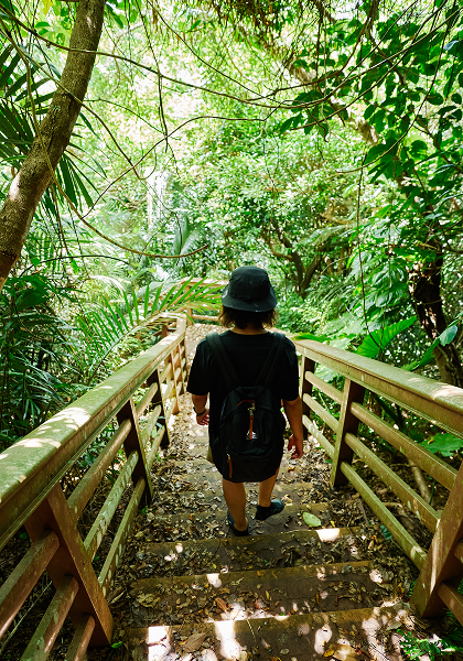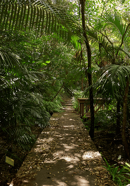 もう少し奥へ進むと、ライトにジャングル感を楽しめるホタル街道へ。公園の中でも特に亜熱帯らしい昆虫や植物が観察できます。3月中旬~5月中旬の夜にはヤエヤマヒメボタルが舞うことも。